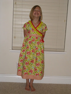 I used this ebook from YouCanMakeThis. Fabric is Heather Bailey Pop Garden and Bijoux and Amy Butler Lotus. The pattern was SUPER easy and fast- 2 pattern pieces and everything else is rectangles. As long as you can gather, you can make this dress. And yes, I know my kid is a dork. I made the size 8/10. There’s plenty of room (see last pic). I would for sure recommend this ebook. I like that it can be a shirt or a dress and that it comes in sizes 1-10.