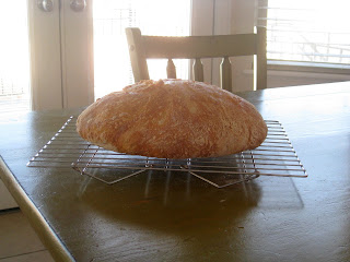 See that wonky party on top? Totally stuck to my towel. And see how it’s kind of flat? I think I need a smaller, rounder pot. Mine’s like 9 quarts and oval-y. Bread flour worked better than regular flour. See? Obsessed.